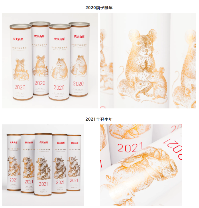 For seven consecutive years, Nongfu Spring has chosen QunLe packaging compound paper cans on the outer packaging. Pure white labels are matched with gold foil decorative edge, and the illustrations are consistent with the bottle body, which are both practical and beautiful, and well integrate the three senses of "look and feel, touch and experience" into the works.